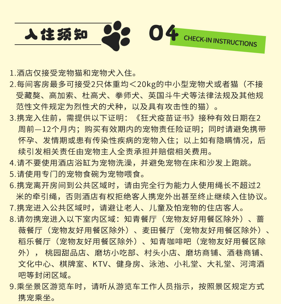 宠物友好房至少需提前一天预订;