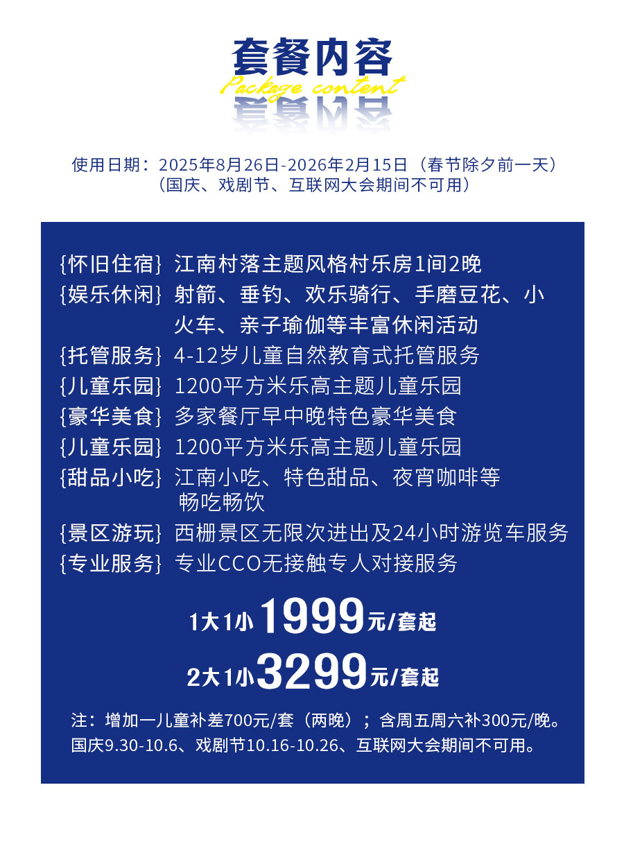 套餐包含内容未如期使用视为自动放弃,未使用项目费用不作退款处理; 如因酒店维保休整,景区将为您调整房间至与您预订酒店同等级的酒店客房入住,感谢配合!