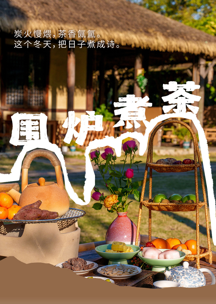 围炉煮茶体验地点:后街酒家(乌镇蘑菇屋),营业时间13:30-16:00;菜单:坚果小茶食:椒盐山核桃、开心果、海苔味豆瓣;茶点:蛋黄肉松团子、樱花米糕、祥云绿豆糕、芝麻香糕;甜品 桂花酒酿小芋圆;当季水果 :车厘子、乌村甘蔗、砂糖橘;围炉茶饮: 桂花红茶+红枣+桂圆;