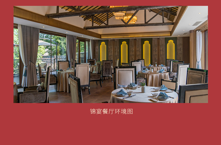 锦宴餐厅营业时间:11:00-13:30,17:00-20:00;菜单: 食:金线纳福百合汤*2、吉祥如意河虾仁、三葱聚福运当头、脆皮笋壳迎新春、好事发生手指肠、一马定胜糕*2、锦绣前程水果盘(份);