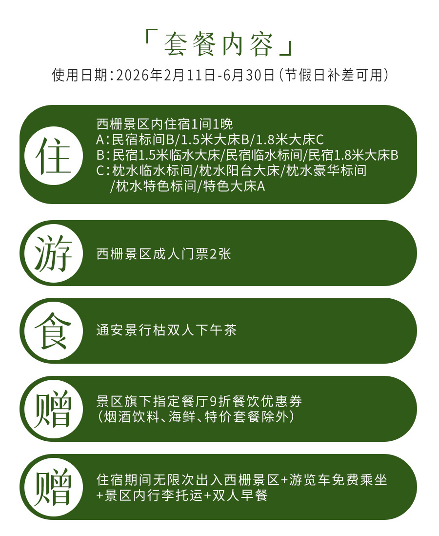 住宿期间如需出入西栅景区可在入住酒店前台办理人脸识别,人脸识别退房当天中午12:00前有效,退房当日12:00后离开景区再次进入需重新购买景区门票;