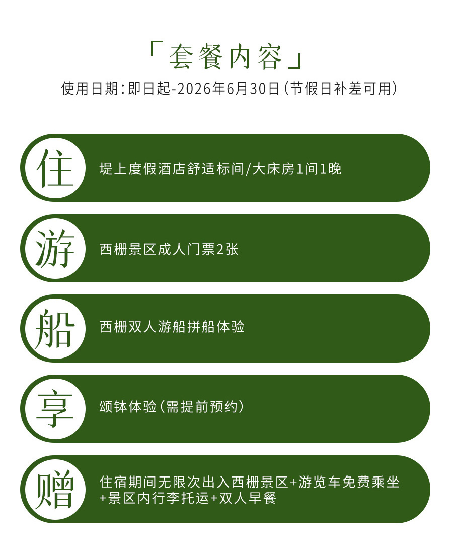 住宿期间如需出入西栅景区可在入住酒店前台办理人脸识别,人脸识别退房当天中午12:00前有效,退房当日12:00后离开景区再次进入需重新购买景区门票;