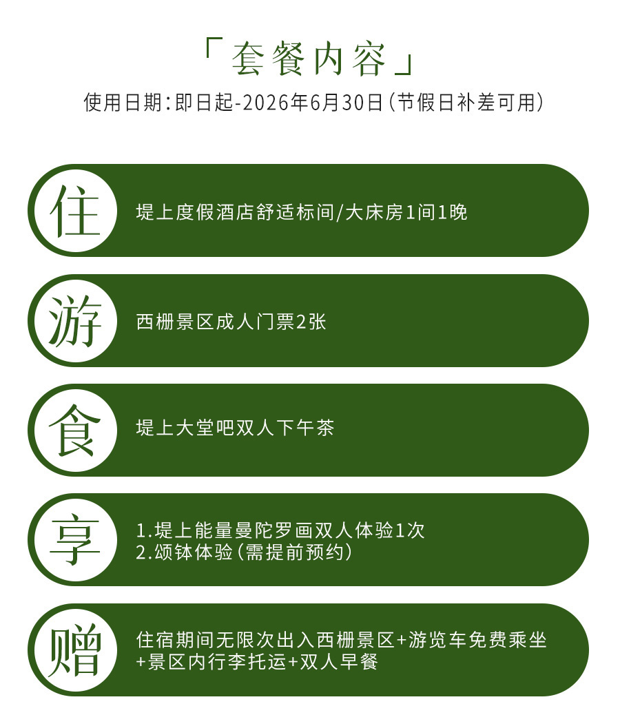 住宿期间如需出入西栅景区可在入住酒店前台办理人脸识别,人脸识别退房当天中午12:00前有效,退房当日12:00后离开景区再次进入需重新购买景区门票;