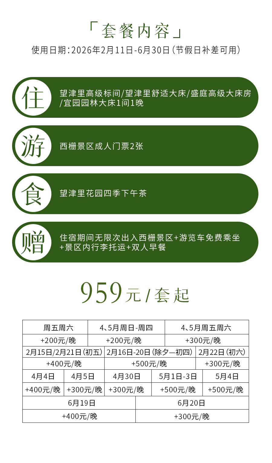 春节2月15日/2月21日(初五)补差400元/晚,2月16日-20日(除夕—初四)补差500元/晚,2月22日(初六)补差300元/晚。
