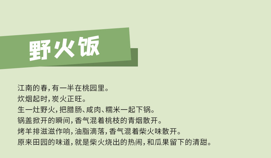野火饭体验地点;乌村戏剧公社野火饭区,时间:上午场11:00-13:30 、下午场16:00-20:00;需提前拨打预订电话0573-88733009登记,当天最晚预订时间为15:00前;