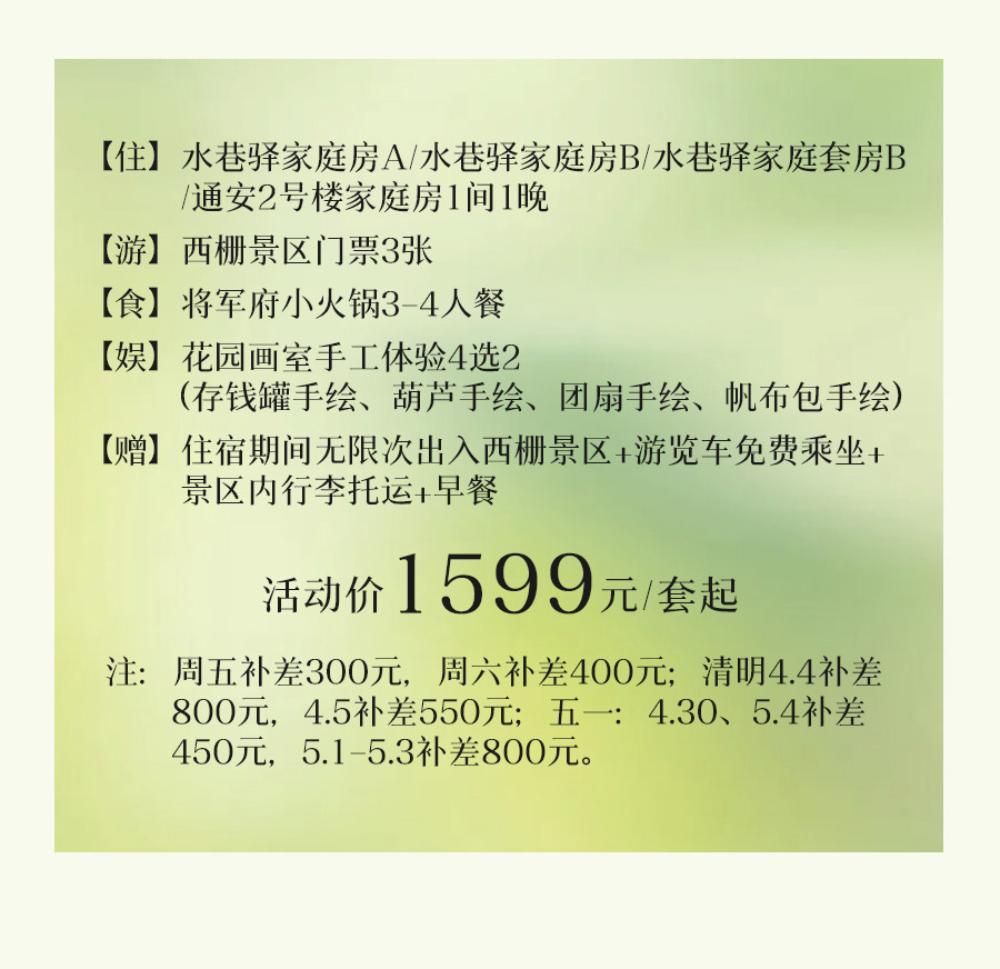 套餐外的体验内容需现场补差;