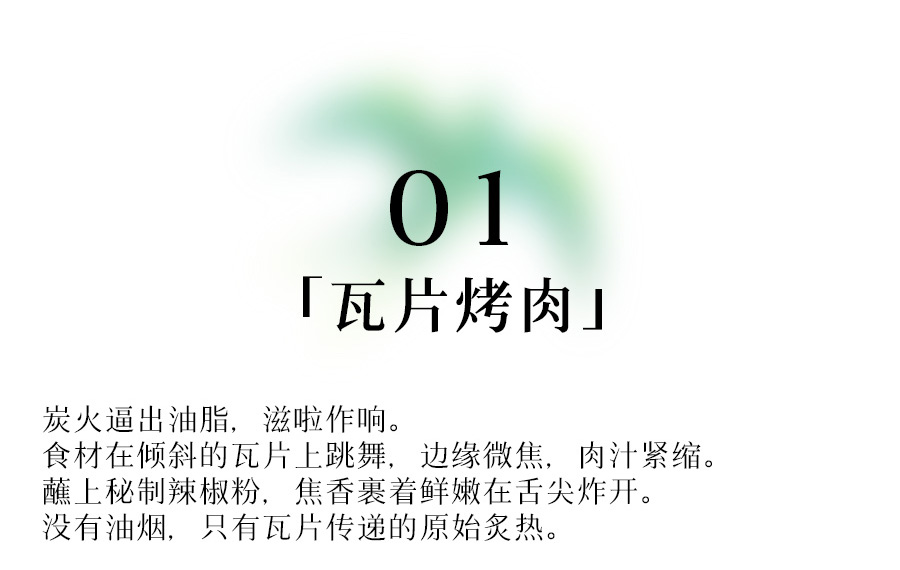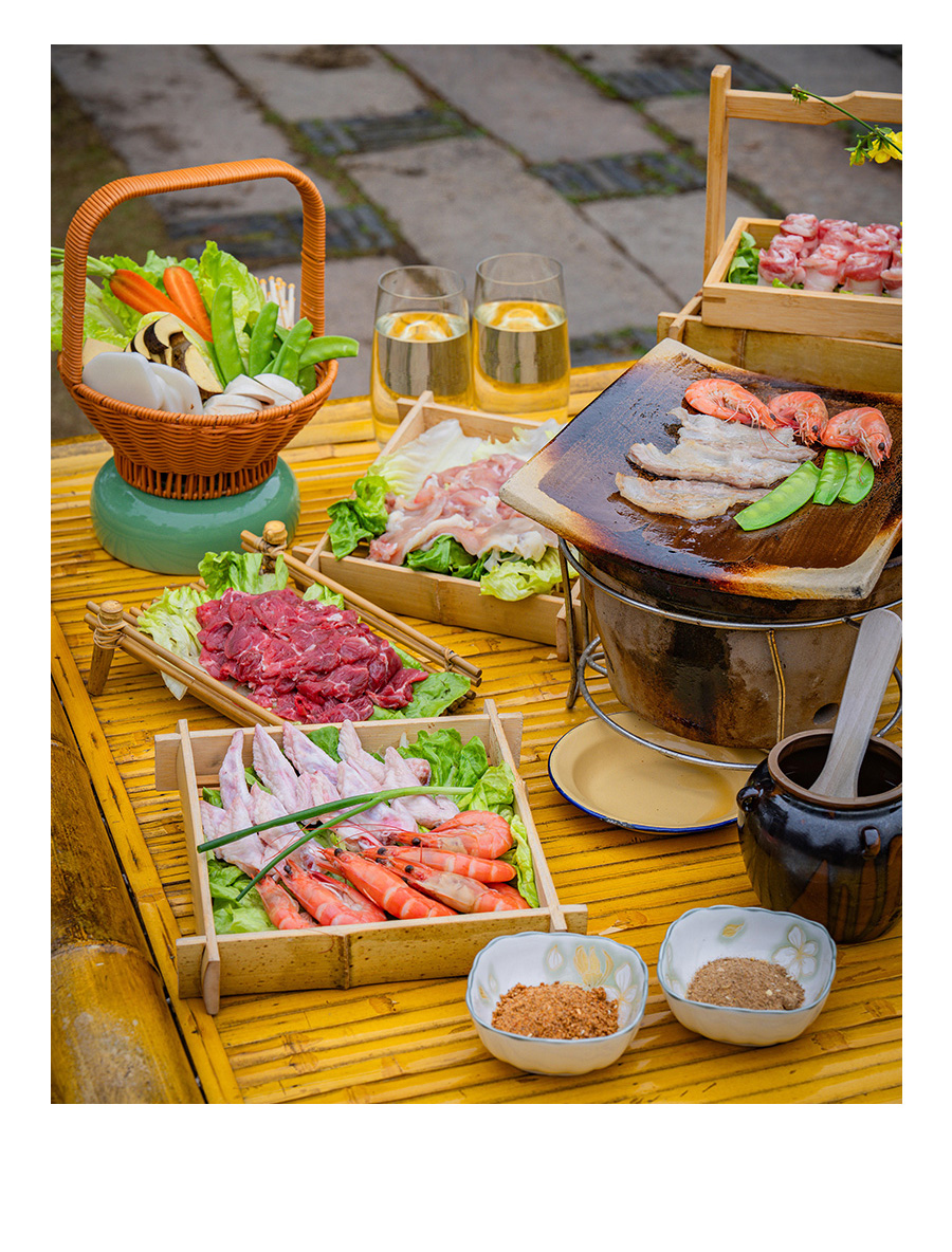 蘑菇屋瓦片烤肉用餐时间:11:30-20:00;菜单:牛吊龙、鸡翅尖、华腾五花肉、去骨鸡腿排、深海大虾(6只)、菌菇三款、时蔬三款、年糕、苹果醋饮、春季水果篮;