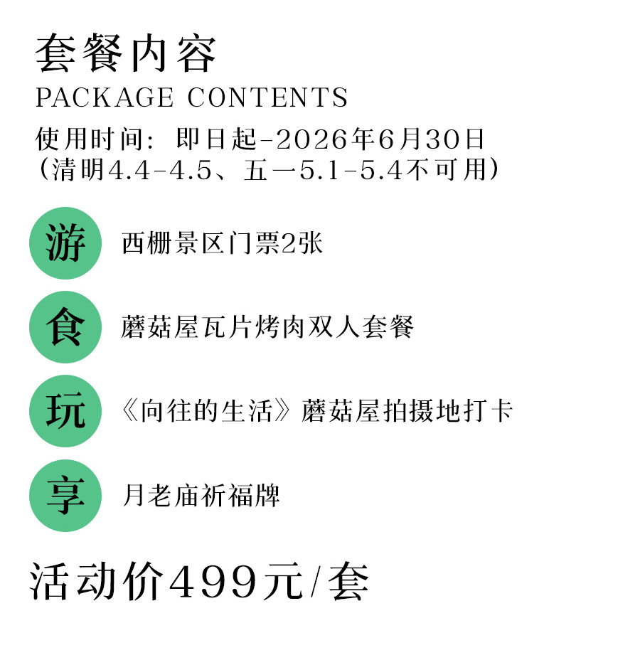 购买该套餐,凭短信到西栅景区售票大厅综合业务窗口换取凭证(电子凭证),客人凭电子凭证进入景区;