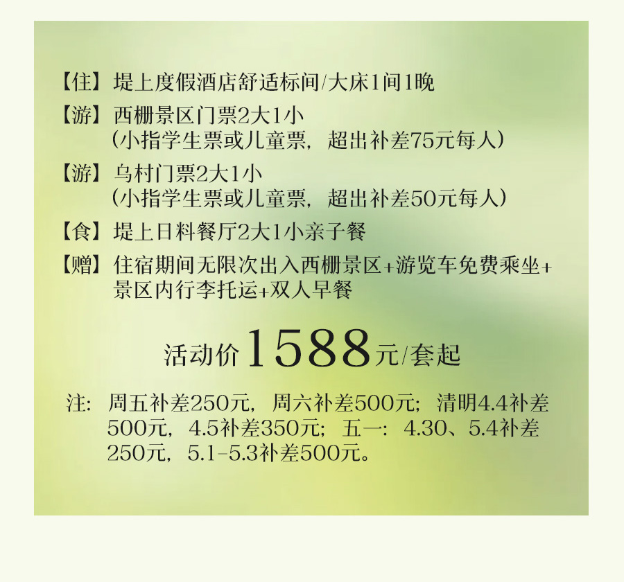 套餐外的体验内容需现场补差;