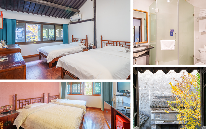 房间描述: 房间内设2张1.2米单人床,窗外街景或庭院景
