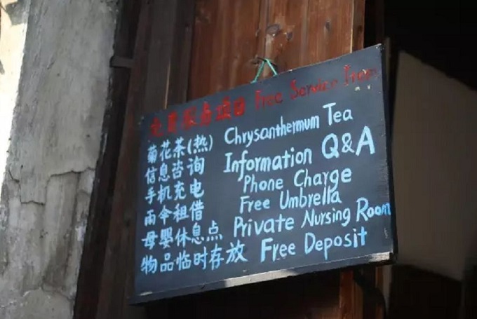 乌镇西栅景区内有两个“志愿者之家”,成员多为乌镇本地的退休老人。志愿者之家免费为游客提供雨伞租借、街电租借、信息咨询、物品临时存放、茶水免费供应、手机充电等服务,类似于一个暂时休憩的港湾。