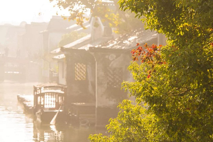 隔岸观水,进入一个慢生活的水墨世界。初晨的太阳,耳畔伴着游船声,从睡梦中醒来,看清晨的时光。