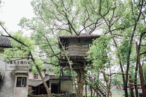 | 比如,在村头池塘旁的空旷地上,设有一个乌村独一无二的树屋,其功能据说是作为小型图书馆。这实在是一个凹造型的好地方。 | ||